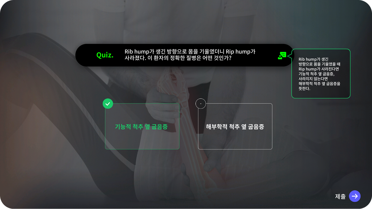 진행 중 퀴즈로 즉시 피드백(손 위치, 방향 등)